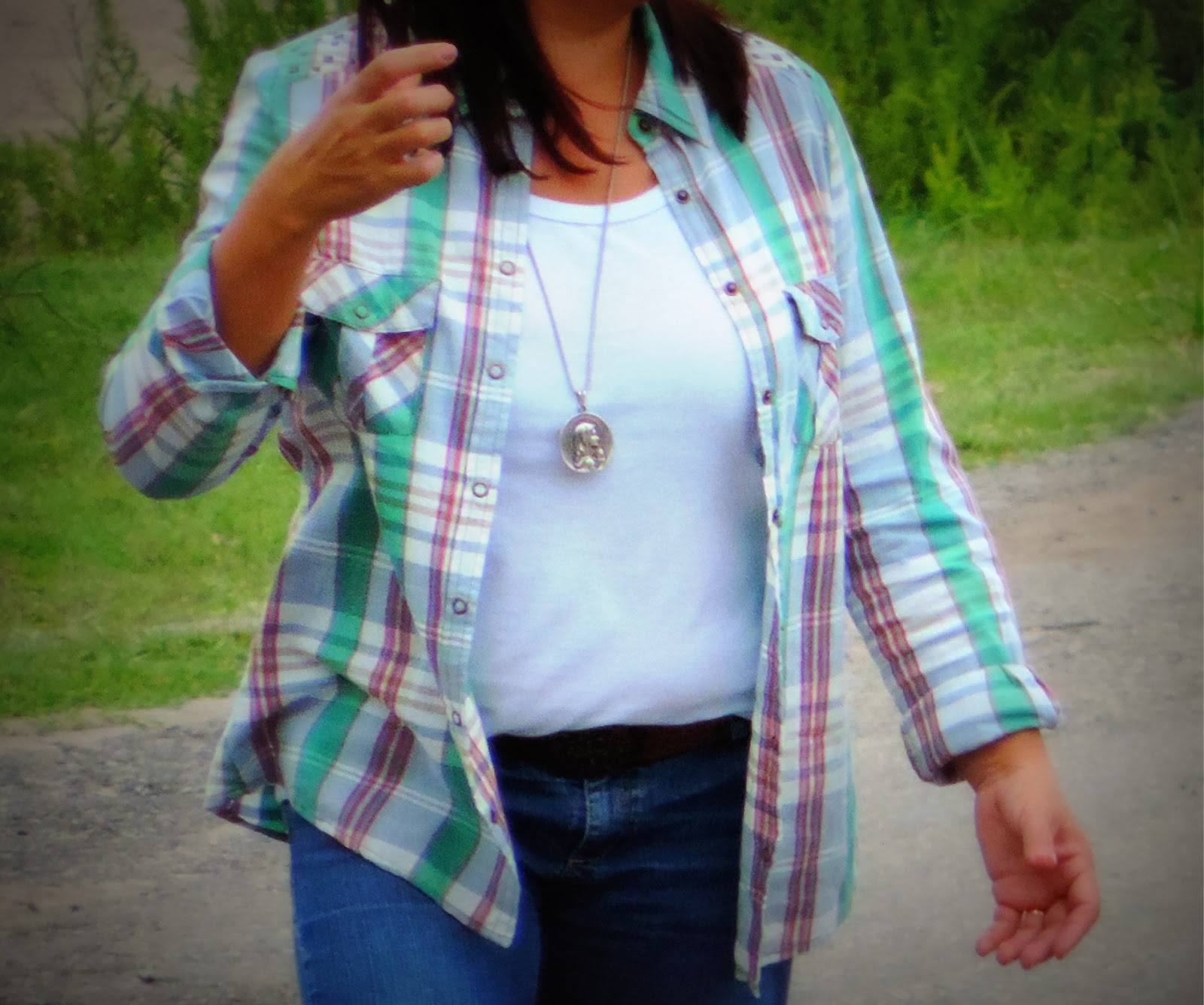 El look que les muestro hoy lo use el lunes de tarde para pasear por el campo y recorrer mi pueblo Rosario con parte de mi familia ,nada más cómodo que este look pero a la vez arreglado ,camisa escosesa que ya mostre por aquí y jeans,lo nuevo son estas chatitas rojas otra de mis compras de rebajas